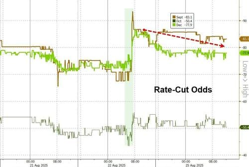 Dopo che l’intervento di Powell al simposio di Jackson Hole aveva acceso le speranze di un taglio dei tassi già a settembre, l’euforia di Wall Street si è rapidamente raffreddata, lasciando spazio a maggiore cautela. Lunedì gli indici americani sono arretrati e i rendimenti dei Treasury a breve termine sono saliti, segnale che gli investitori stanno valutando con prudenza la reale portata e il ritmo dell’allentamento monetario. Sebbene le probabilità di un taglio dei tassi a settembre restino elevate, la traiettoria successiva appare incerta: la possibilità di un ulteriore taglio a ottobre è scesa intorno al 40%, mentre l’ipotesi di tre interventi complessivi entro fine anno è vista solo da una minoranza del mercato.